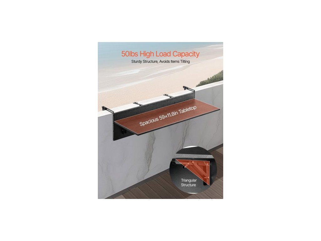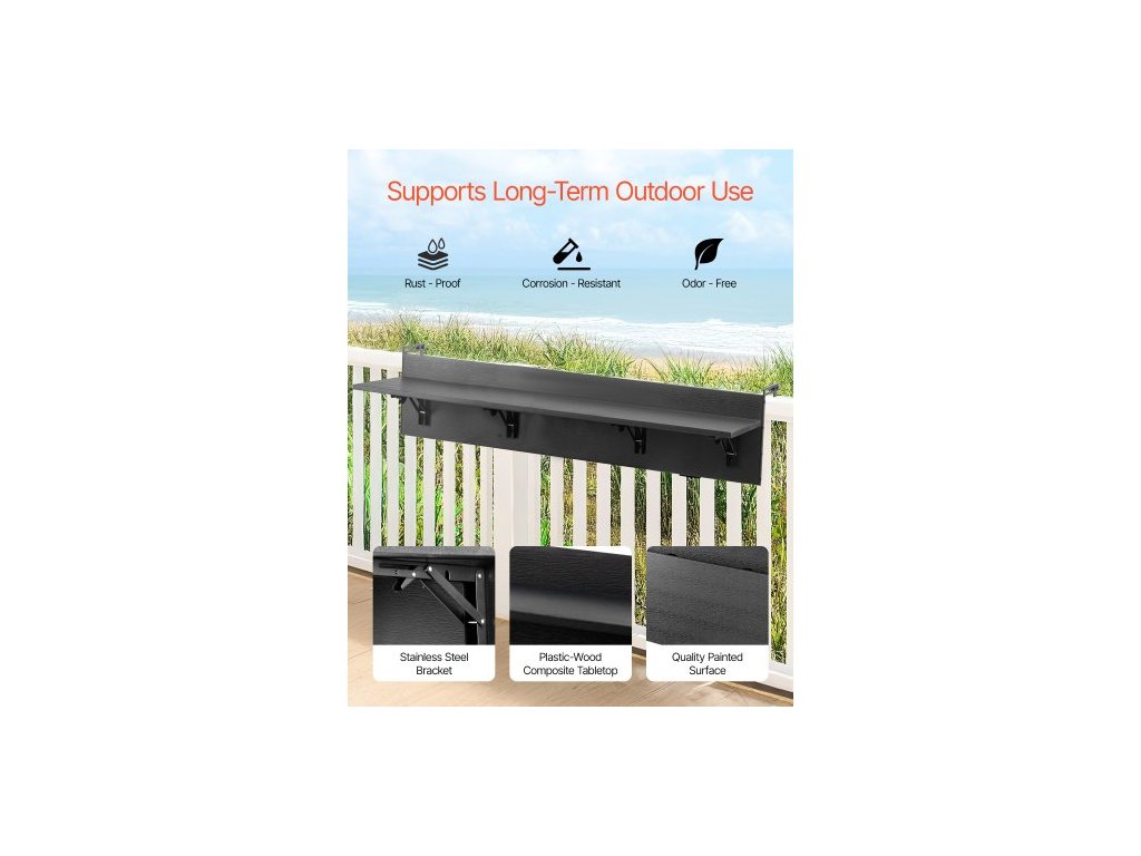 Závěsný stůl na balkon , skládací stůl na balkonové zábradlí 12 x 59 palců, venkovní barový stůl na balkon, nosnost 50 liber, vhodný pro zábradlí od 1" do 5,9", servírovací stůl na terasu a terasu
