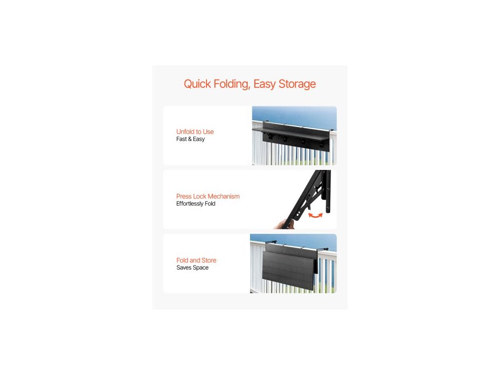 Závěsný stůl na balkon , skládací stůl na balkon 12 x 59 palců, venkovní barový stůl na balkon, nosnost 50 liber, vhodný pro zábradlí od 1" do 5,9", servírovací stůl na terasu a terasuMultifunkční skládací stůl na zábradlí