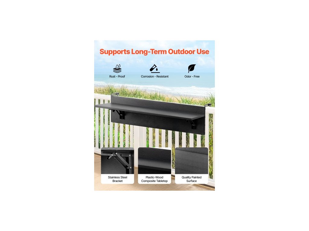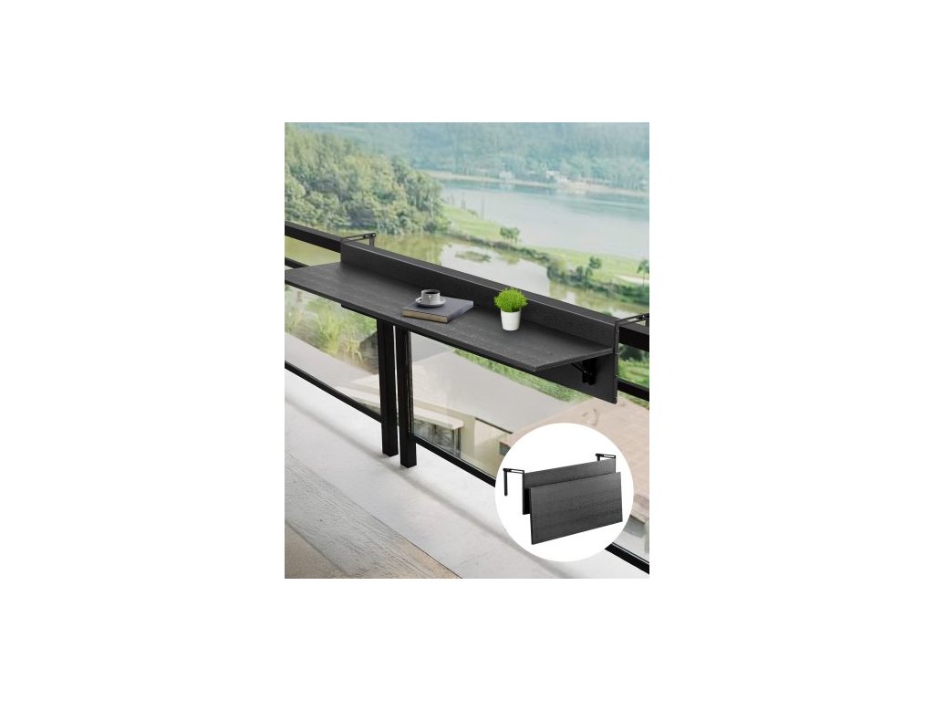 Závěsný stůl na balkon , skládací stůl na zábradlí 12 x 32 palců, venkovní barový stůl na balkon, nosnost 50 liber, vhodný pro zábradlí od 1" do 4,3", servírovací stůl na terasu a terasu