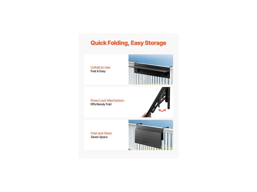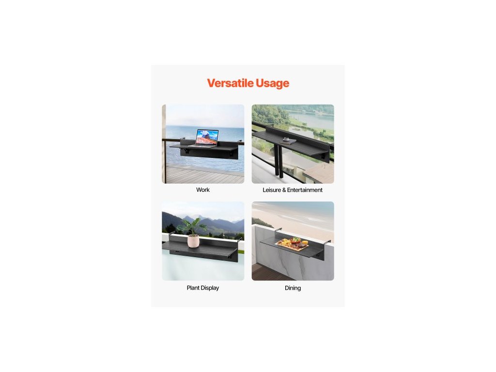 Závěsný stůl na balkon , skládací stůl na balkon 12 x 32 palců, venkovní barový stůl na balkon, nosnost 50 liber, vhodný pro zábradlí od 1" do 4,3", servírovací stůl na terasu a terasuMultifunkční skládací stůl na zábradlí
