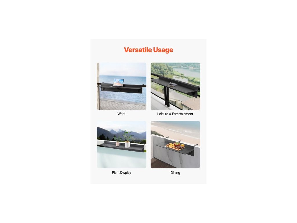 Závěsný stůl na balkon , skládací stůl na balkon 12 x 48 palců, venkovní barový stůl na balkon, nosnost 50 liber, vhodný pro zábradlí od 1" do 4,3", servírovací stůl na terasu a terasuMultifunkční skládací stůl na zábradlí