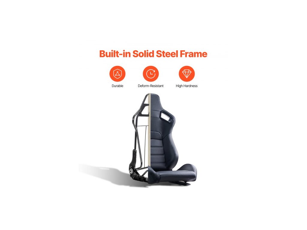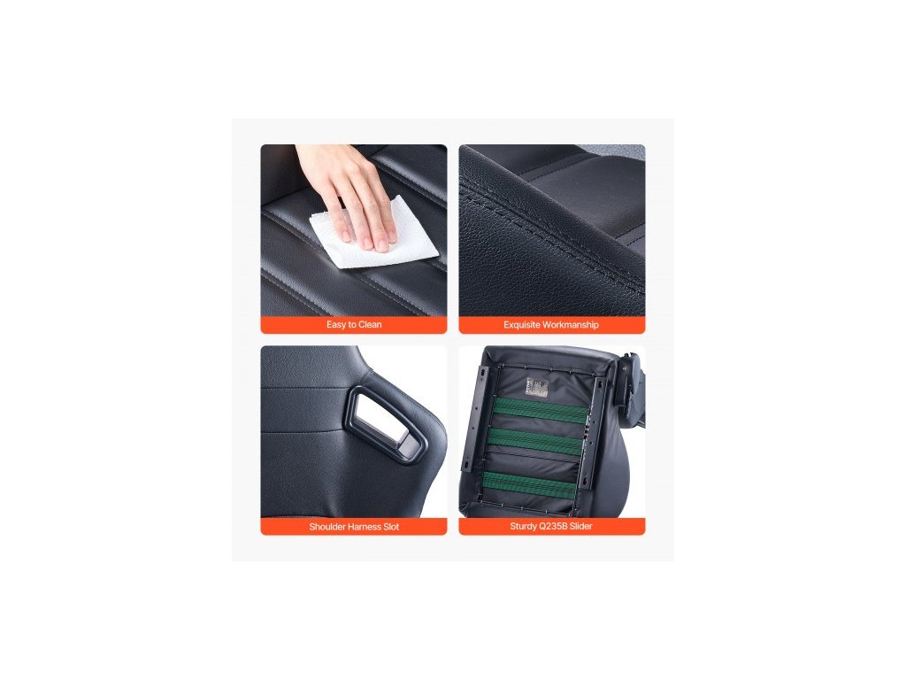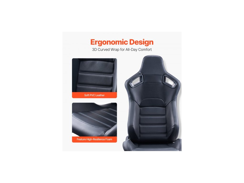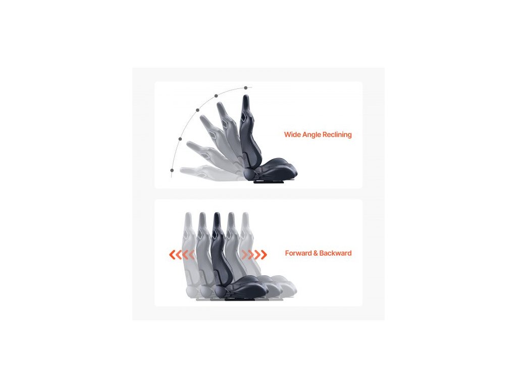 Závodní sedadlo , sada 2 kusů, nastavitelný závodní kokpit s širokým úhlem sklápění a vysoce odolnou pěnou, pohodlné závodní křeslo s měkkou PVC kůží a posuvníkem Q235B, vhodné pro závodní auta a motokáry