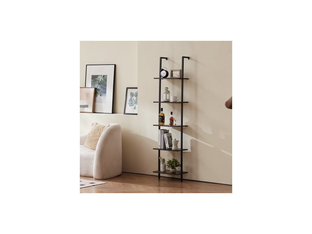 Žebříková police , 5patrová knihovna 15,6x11,8 palce, otevřená nástěnná žebříková police s kovovým rámem, úložný regál na drobnosti do kuchyně, ložnice, koupelny, obývacího pokoje, černáOdolná proti korozi a odolná