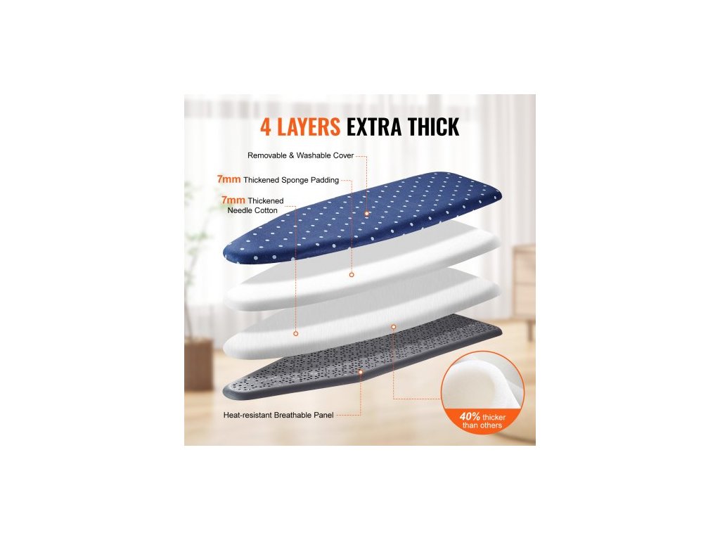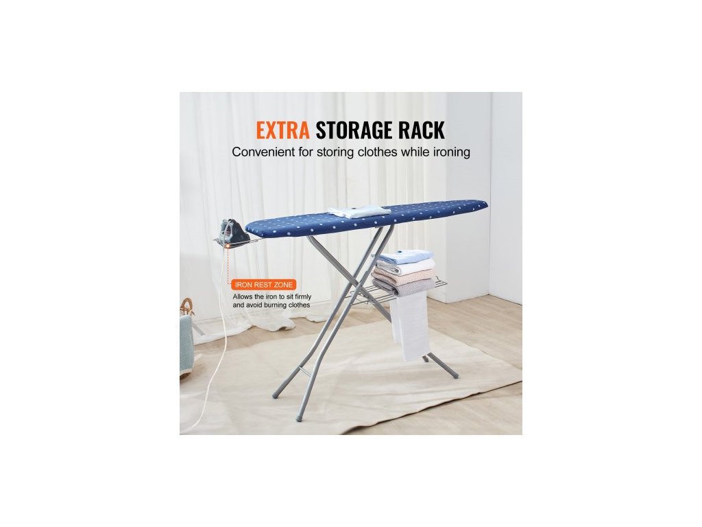 Žehlicí prkno se spodním úložným prostorem, zesílené 4vrstvé žehlicí prkno s tepelně odolným potahem a 100% bavlněným potahem, 10 nastavitelných výšek žehlicího prkna pro použití v domácí prádelně (rozměr 55x15)Už žádné připalování a skvrny