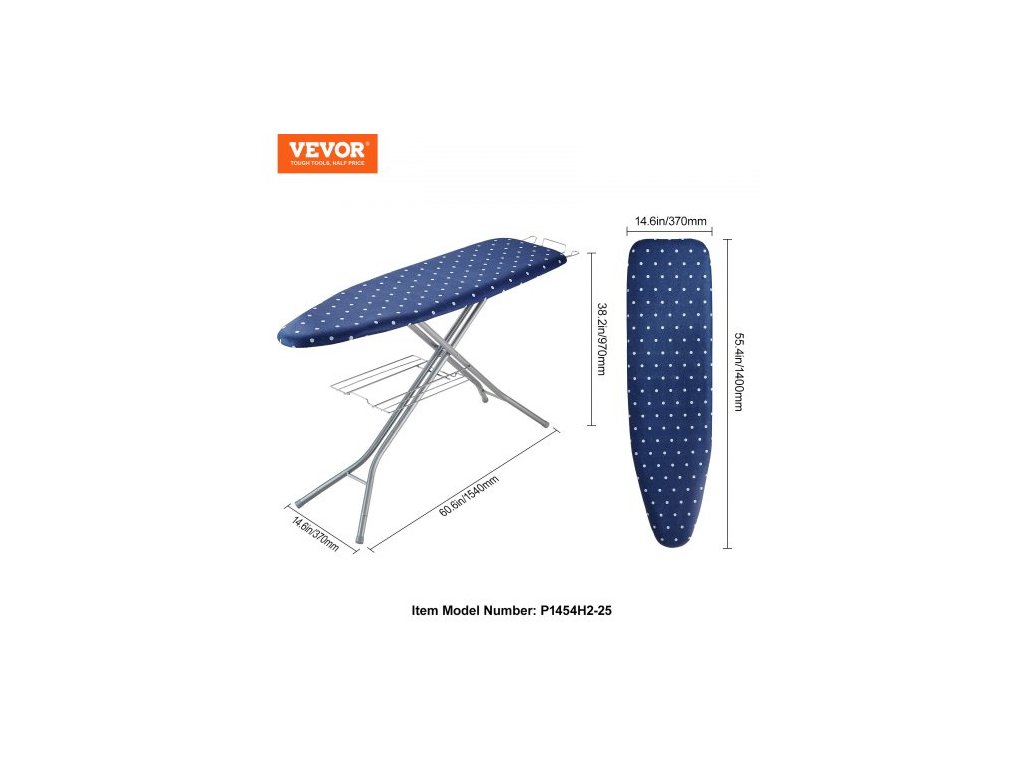 Nastavitelná výška: 25,2-38,2 palce / 640-970 mm,Potah: 1 x 100% bavlněný potah + 1 x tepelně odolný potah,Číslo modelu položky: P1454H2-25,Max. Nosnost: 30 kg, Hmotnost výrobku: 5,3 kg, Materiál vrstev: PP panel + houba + jehlovaná bavlna + žáruvzdorný postříbřený potah, Rozměry žehlicího prkna: 1400 x 370 mm, Hlavní materiál: PP panel + houba + jehlovaná bavlna + žáruvzdorný postříbřený potah + rám Q235, Rozměry výrobku: 1540 x 370 x 970 mm