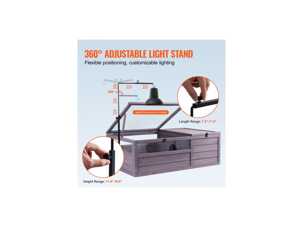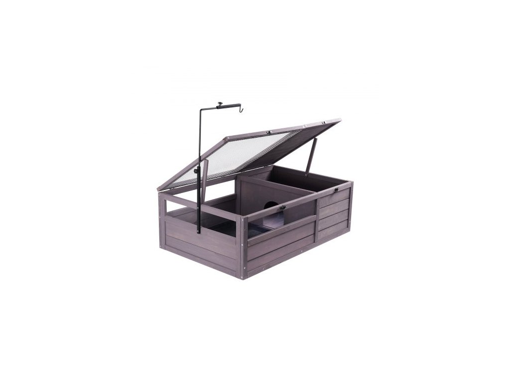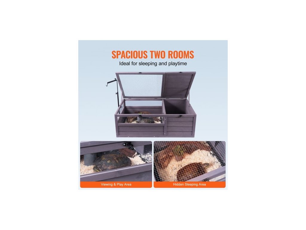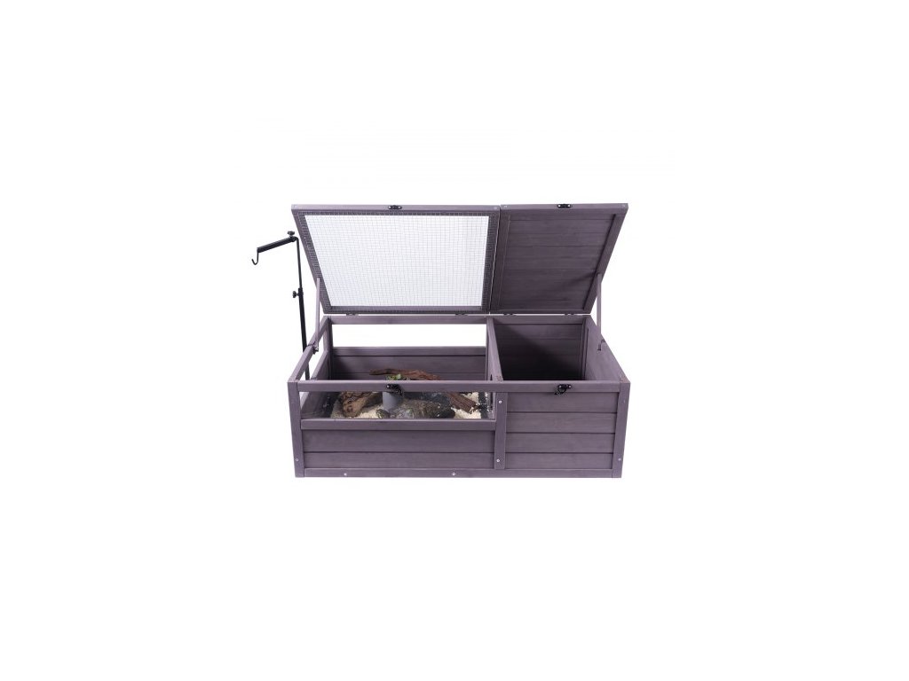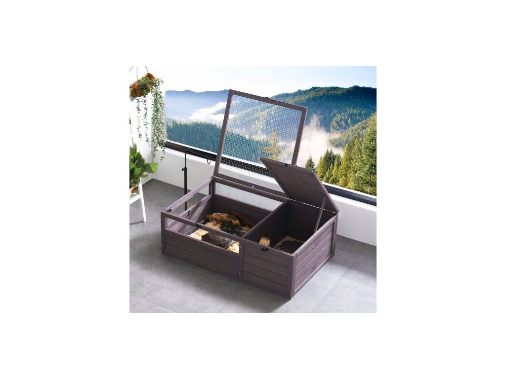 Želví habitat, dřevěný želví domek pro vnitřní i venkovní použití, želví terárium s nastavitelnou objímkou, 2místný terárium pro plazy, klec pro malá zvířata, jako je gekon, ještěrka, hadi, 91x61x33 cm