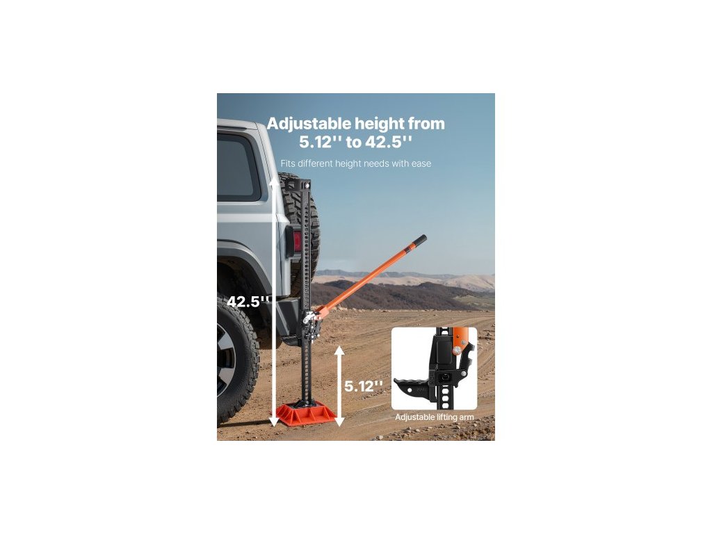 Zemědělský zvedák se základnou, 122cm vysokozdvižný zemědělský zvedák, nosnost 3,18 tuny s ráčnou, terénní zvedáky, vysoce výkonné zvedáky s rozsahem zdvihu 130,1–1079,5 mm pro traktory, nákladní automobily a SUV