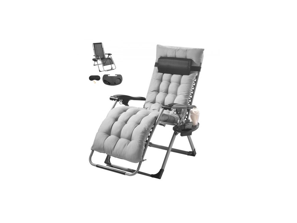Křeslo Zero Gravity, 26palcové křeslo s nulovou gravitací pro vnitřní i venkovní použití, nastavitelné antigravitační křeslo s polštářem, opěrkou hlavy, opěrkou nohou a držákem na nápoje, 500 liber, šedáKřeslo Zero Gravity
