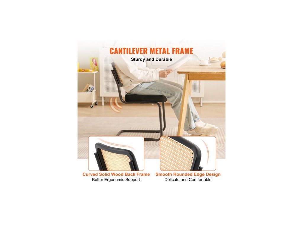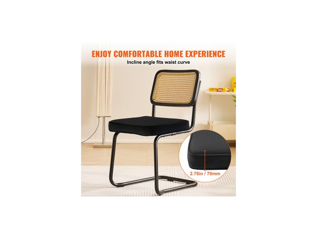 Židle z ratanu, sada 2 kusů, jídelní židle v moderním stylu poloviny století, čalouněná sametová akcentní židle s ratanovým opěradlem, retro jídelní kuchyňská židle do obývacího pokoje, ložnice, čítárny, kanceláře, černá