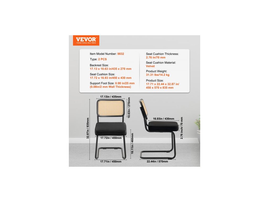 Rozměry opěradla: 435 x 270 mm,Rozměry opěrné nohy: 25 mm (tloušťka stěny 2 mm),Materiál sedáku: Samet,Tloušťka sedáku: 70 mm,Číslo modelu: 9832,Hmotnost výrobku: 14,2 kg,Množství: 2 ks,Rozměry sedáku: 450 x 430 mm mm, Rozměry produktu: 17,71 x 22,44 x 32,87 palce / 450 x 570 x 835 mm