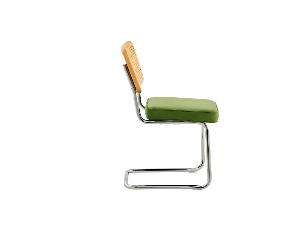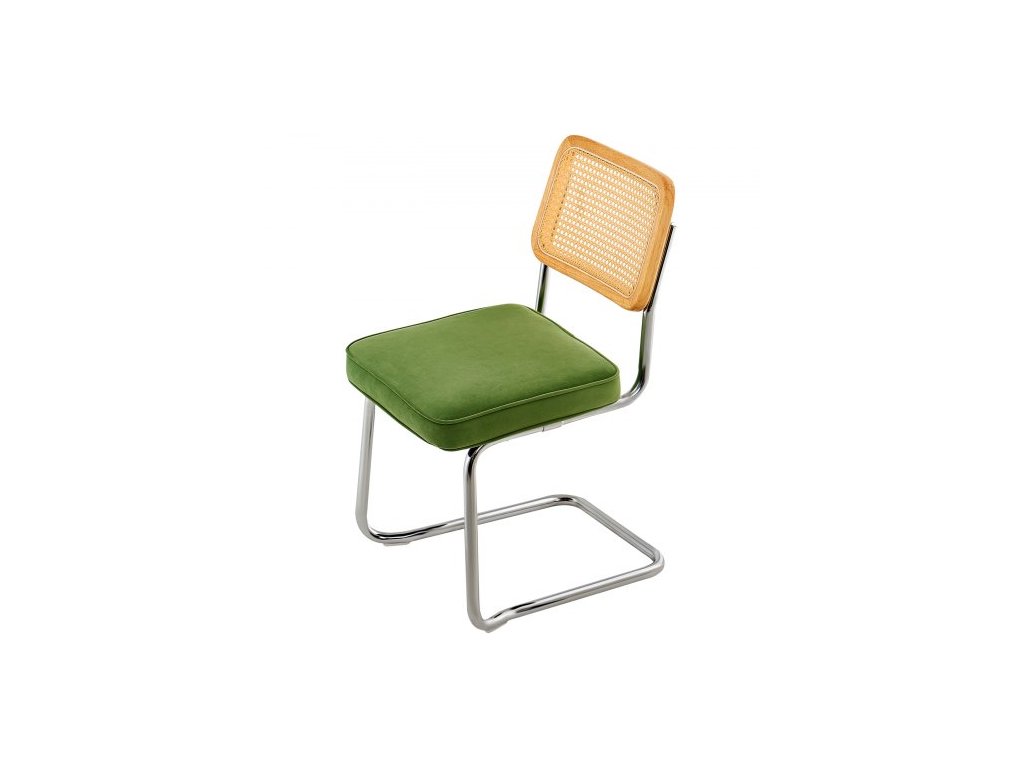 Židle z ratanu, sada 4 kusů, moderní jídelní židle ve stylu poloviny století, čalouněná sametová akcentní židle s ratanovým opěradlem, retro jídelní kuchyňská židle do obývacího pokoje, ložnice, čítárny, kanceláře, zelenáRetro-moderní fúze