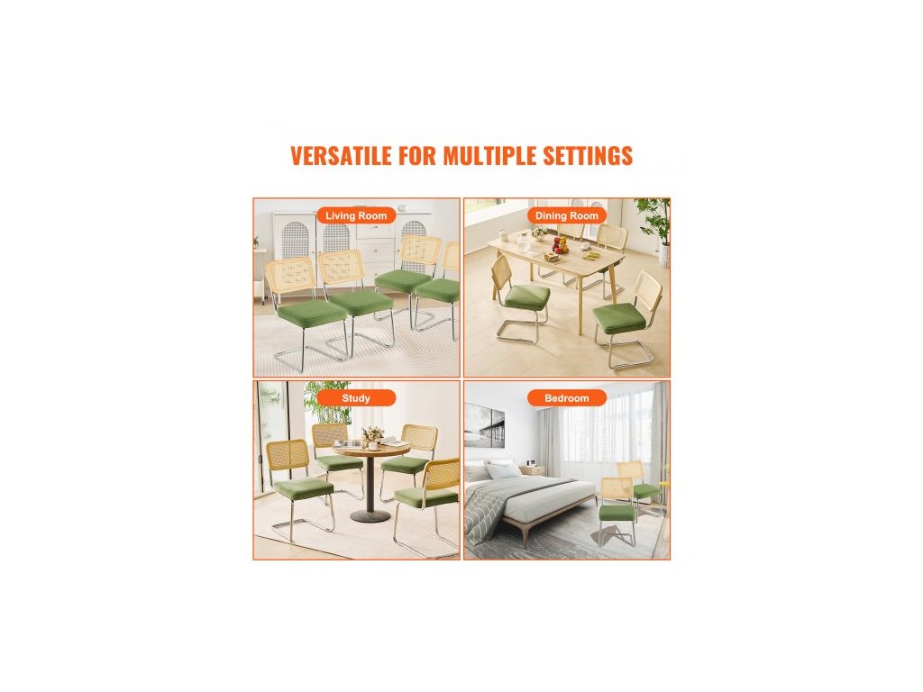 Rozměry opěradla: 435 x 270 mm,Rozměry opěrné nohy: 25 mm (tloušťka stěny 2 mm),Materiál sedáku: Samet,Tloušťka sedáku: 70 mm,Číslo modelu: 9832,Hmotnost výrobku: 28,4 kg,Množství: 4 ks,Rozměry sedáku: 450 x 430 mm mm, Rozměry produktu: 17,71 x 22,44 x 32,87 palce / 450 x 570 x 835 mm