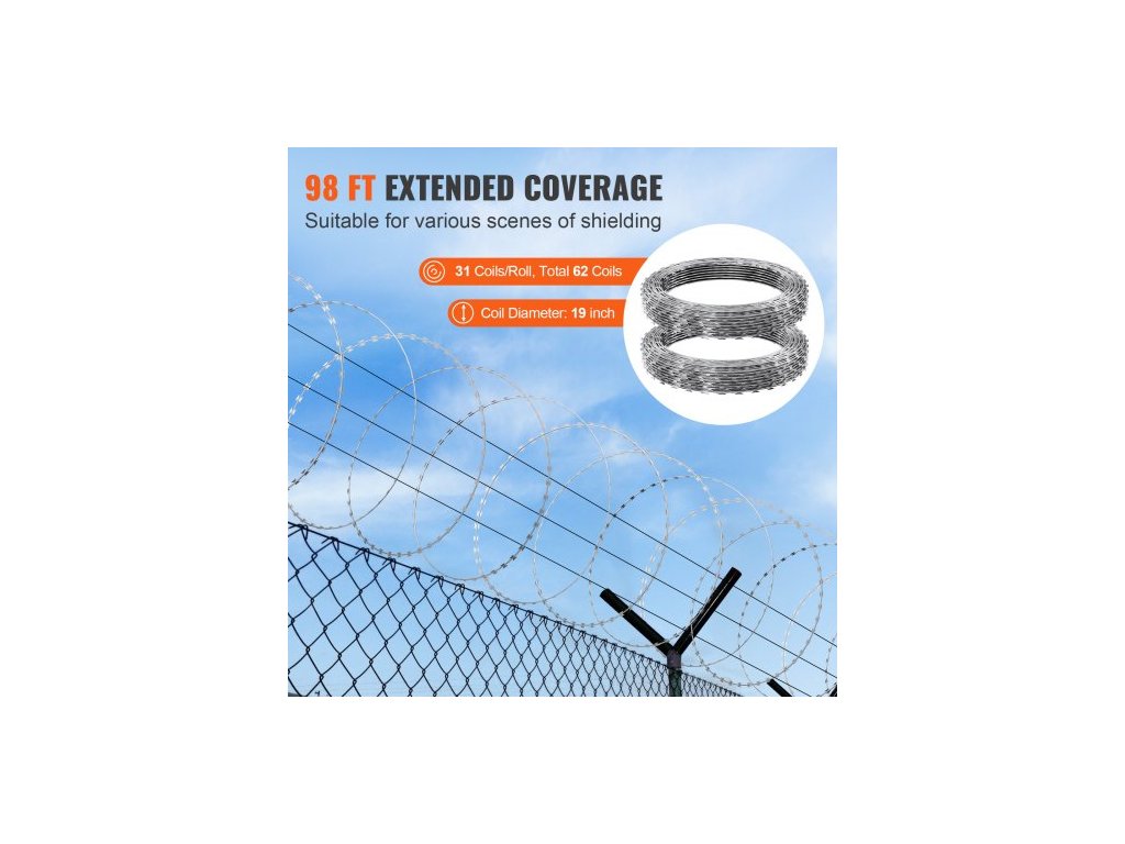 Žiletkové dráty, 98 stop ostnatý drát, 2 role ostnatého drátu, ostnatý plot, ostnatý páskový drát, pozinkovaný ostnatý drát, role, žiletka do zahradyVysoce zinkové zpracování