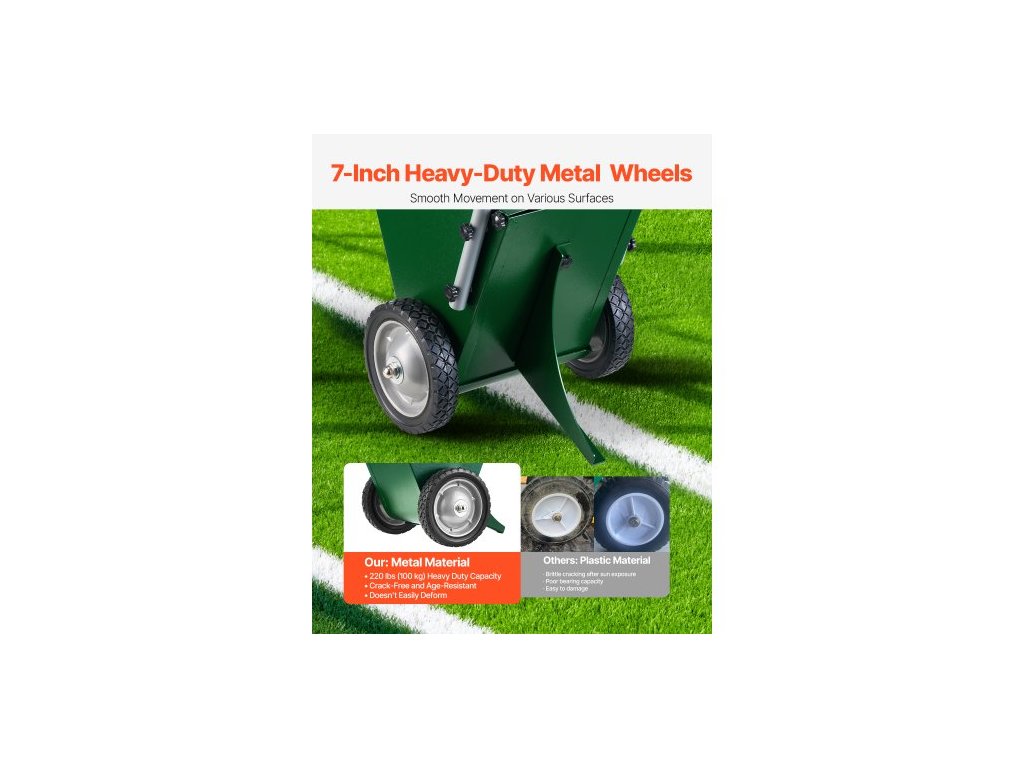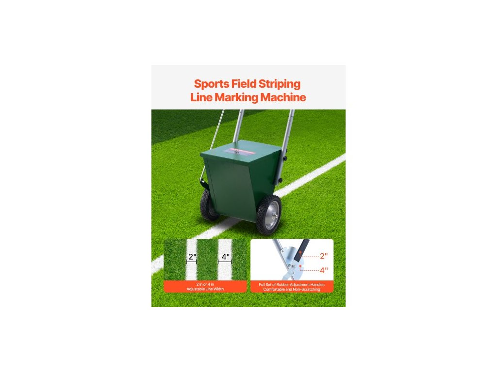 Značkovač čar , 2 kolečka, 2 nebo 4 palce, nastavitelný značkovač čar, s gumovou nastavovací rukojetí, velká kapacita prášku 11,5 kg, pro baseballové a softballové hřiště, zelený