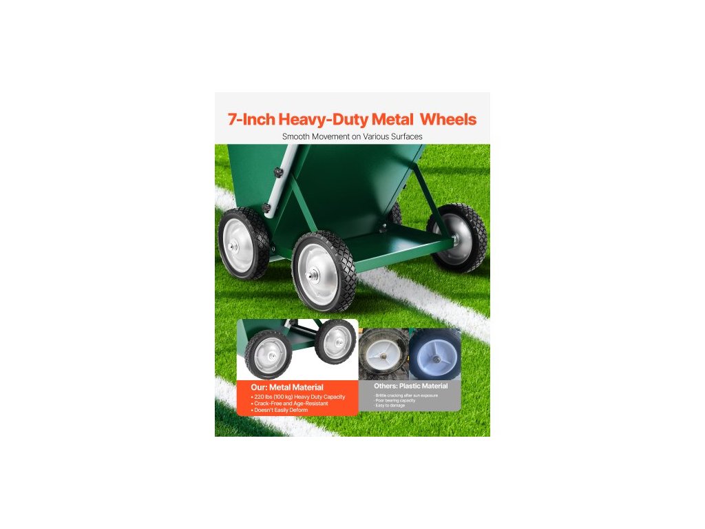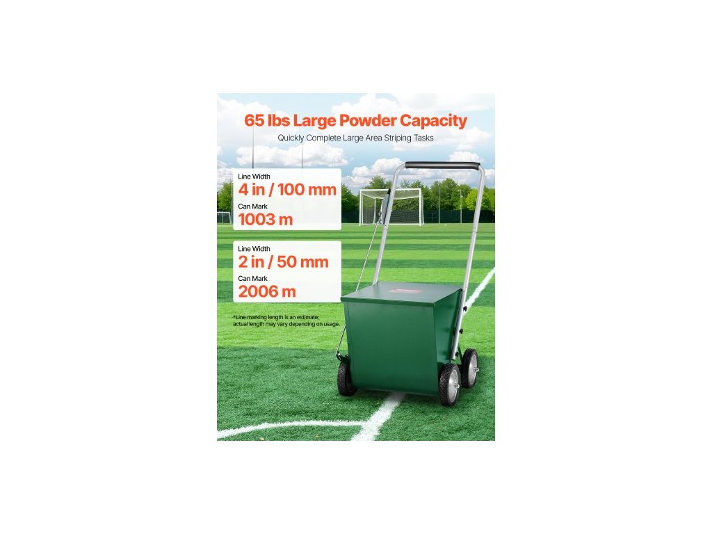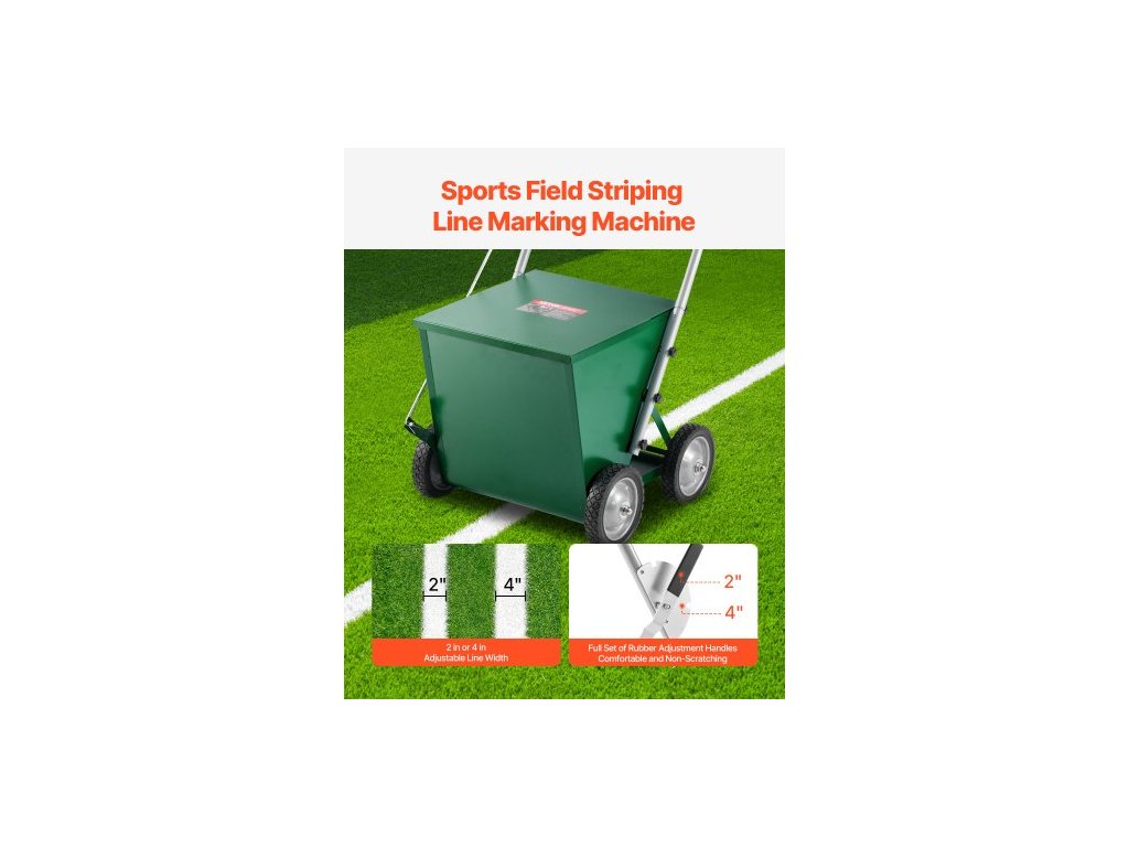 Značkovač čar , 4kolový, 2 nebo 4 palce dlouhé čáry, nastavitelný značkovač čar, s gumovou nastavovací rukojetí, velká kapacita prášku 65 liber, pro baseballové a softballové vnitřní hřiště, zelený