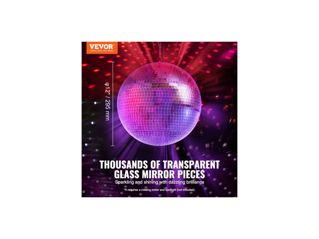 Zrcadlová disko koule, 12palcová zrcadlová koule se závěsným kroužkem, blesková disko koule, párty dekorace, ideální pro DJ klub, pódium, svatbu, narozeniny, Vánoce, oslavu Nového roku