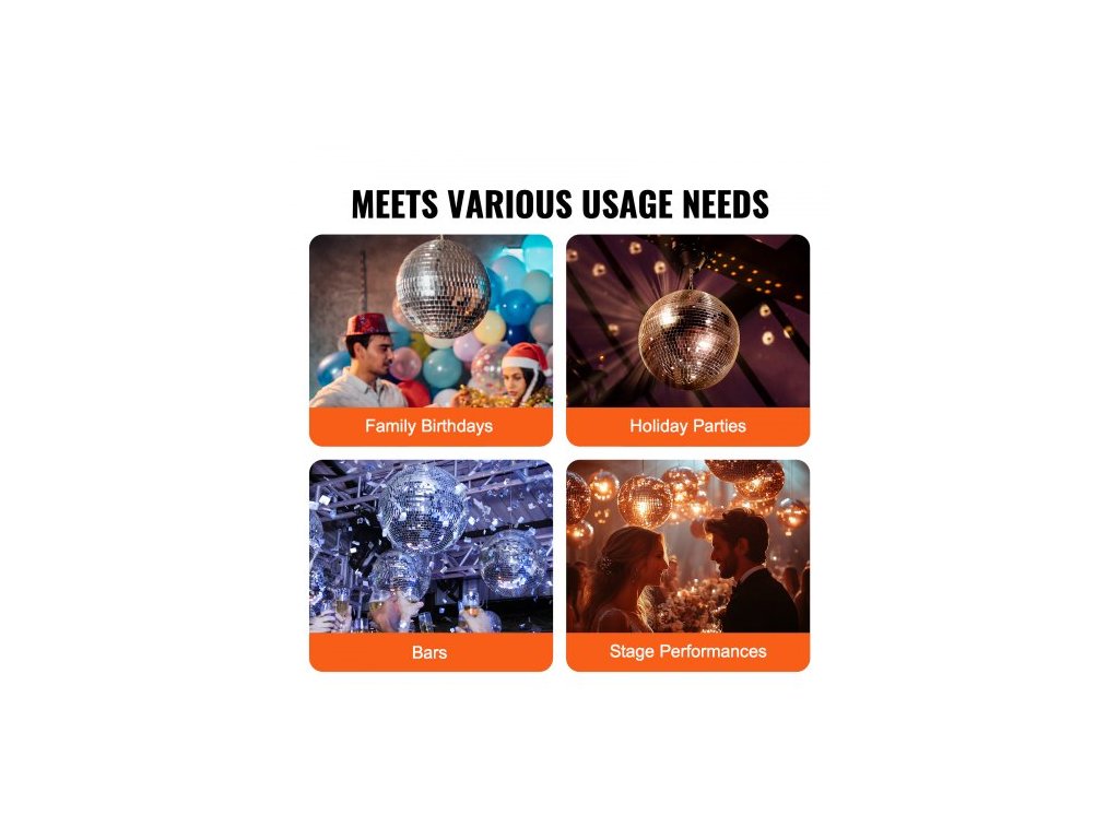 Zrcadlová disko koule, 12palcová zrcadlová koule se závěsným kroužkem, blesková disko koule na párty, ideální pro DJ klub, pódium, svatbu, narozeniny, Vánoce, oslavu Nového rokuNastavte perfektní atmosféru
