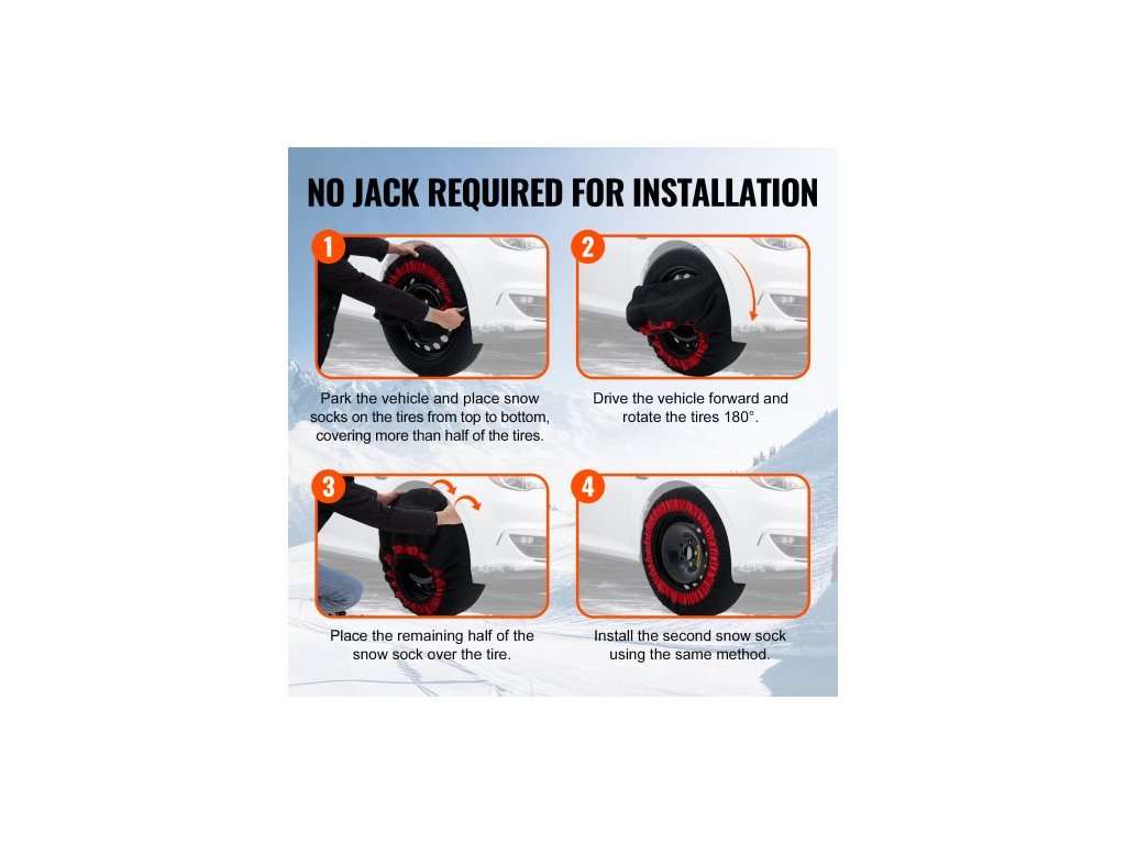 Ztluštěné sněhové ponožky na pneumatiky, polyesterové ponožky na pneumatiky s elastickými pásky, kryt pneumatiky s trakci na sněhu pro osobní automobily, SUV, pickupy a nákladní vozy (balení 2 kusů) - Extra velkéZlepšená trakce a přilnavost